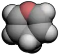 In chemistry, pyran is a six-membered heterocyclic, non-aromatic ring, consisting of five carbon atoms and one oxygen atom and containing two double bonds. The molecular formula is C5H6O. There are two isomers of pyran that differ by the location of the double bonds. In 2H-pyran, the saturated carbon is at position 2, whereas, in 4H-pyran, the saturated carbon is at position 4. "Oxine” is not used for pyran because it has been used as a trivial name for quinolin-8-ol.[1]