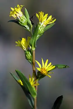 Pyrrocoma racemosa is a species of flowering plant in the family Asteraceae known by the common name clustered goldenweed.[1] It is native to the western United States, where it grows in many types of habitat. It is quite variable in morphology, and there are several varieties which are sometimes hard to tell apart. In general, it is a perennial herb usually producing two or more mostly erect stems reaching maximum heights between 15 and 90 centimeters. The stems are reddish or brownish in color, leafy or not, and hairless to quite woolly. The longest leaves are located in tufts around the base of the stems. They are lance-shaped to oval, smooth-edged, wavy, or deeply spine-toothed, and may exceed 30 centimeters in length. Basal leaves are borne on woolly petioles. Leaves located higher on the stem lack petioles and may clasp the stem at their bases. The inflorescence is a cluster of several flower heads lined with phyllaries which may be over a centimeter long and are hairy to hairless in texture. Each head contains many yellow disc florets and a fringe of several yellow ray florets. The fruit is an achene which may be over a centimeter long including its pappus.