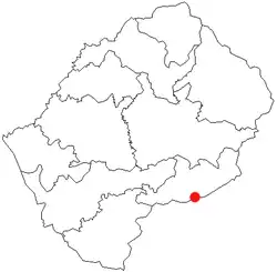 As one enters the town from Maseru (1 km from the road in the picture), one can see the famous lefika-motho ("man-rock"), which looks like a man's head with a cap on. There are several spots where San paintings can still be found. The Sehlabathebe National Park, home of the Sehlabathebe water lily, is about 2.5 hours away by gravel road.
