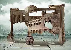 Qatif artist Othman Abu al-Lirat created a 1.5m x 2.5m 3D model of Qatif Castle, depicting the structure as it existed prior to the cutting and demolition phases. The model illustrates the surrounding neighborhoods, including the Milk Barah, Horse Barah, Zarib, Warsh, Khan, and Sidra.[63] This artwork is based on Abu al-Lirat's own photographs of the castle, as well as images captured by other photographers in Qatif and aerial photographs taken by the Saudi Arabian Oil Company. Abu al-Lirat has documented Qatif Castle in various stages, capturing its swabit, streets, and corridors by climbing high buildings to take photographs. He also possesses images of the castle during the cutting and demolition phases, beginning with the removal of the first street in 1385 AH.[64]