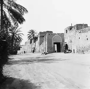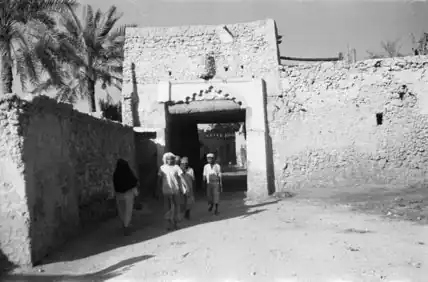 Qatif Castle was historically divided into four distinct neighborhoods: Al-Khan (southwest), Al-Zurayb (northwest), Al-Warsh (northeast), and Al-Sidra (southeast).[10][20] These areas were connected by narrow roads and dark alleys, with Al-Dhulami's alley in Al-Zurayb being the most prominent. Before the removal of the citadel wall, the castle was also surrounded by several other neighborhoods, including Al-Sharia, Bab Al-Shamal (the north gate), Al-Kuwaikib, Al-Madaris, Al-Dababiya, Al-Jarari, Al-Shuwaika, and Mias.[1]