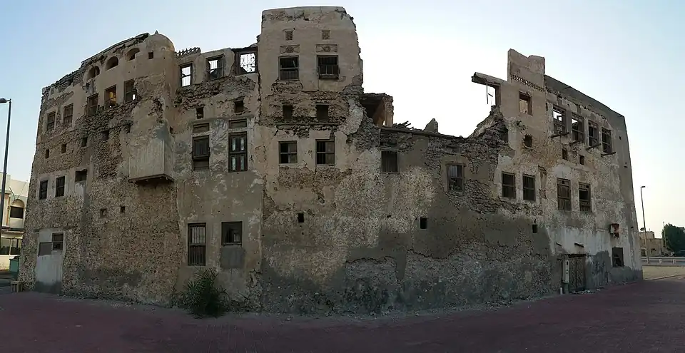 Only eighteen houses remain from Qatif Castle, with several notable properties still standing. Among these are Sheikh Mansour al-Bayat's residence, the home of Mr. Jaafar al-Daalouj located on the main street, and the popular al-Gharab coffee shop in the Al-Sharia neighborhood, along with several mosques and husseiniyas. The current condition of these houses, including those belonging to the Nawahadahs and local merchants, is one of severe disrepair and uninhabitability. In some instances, these houses are occupied by migrant workers, particularly in the Bab Al-Shamal neighborhood, which features numerous heritage buildings.[32]