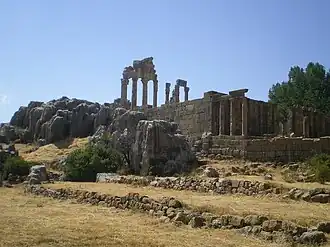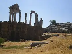 The ruins are the most extensive Roman archeological site in Mount Lebanon and consists of columns, altars tombs and temples.[1] They are divided into three sectors: that of the Claudius Tower and the monumental altars, on the hill to the north; that of the Small Temple, to the south and below, towards the stream of Nabaa el-Laban; and that of the Great Sanctuary, between the first two.