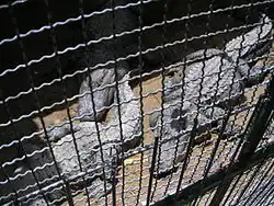 The zoo houses lions, brown bears, crocodiles, ostriches, camels, deer, gazelles, zebras, birds, lizards, snakes, and monkeys of various types.[2] There is also a hippopotamus named Dubi, who shares his small concrete wading pool with a family of peacocks.[3] In December 2003, the zoo was described in The Guardian as "one of the West Bank's more pleasant surprises [...] there is a small but beautiful landscaped park. [...] And amid the trees, in spacious, clean enclosures, a lioness, an ostrich, a family of bears, a pool full of crocodiles."[6] The animals have ample room to move around with some enclosures as big as those in the London Zoo.[4]