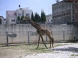 During the intifada, "Dubi", the zoo's only male giraffe, from South Africa, frightened by the sound of gunfire, was killed when it ran into a pole.[3] "Ruti", his pregnant partner, miscarried ten days later.[1] Both animals can now be seen stuffed at the zoo's museum.[5] In 2002, three zebras died after inhaling tear gas used to break up a demonstration at a high school adjacent to the zoo.[8] Mr. Khadr applied taxidermy to preserve some of the animals, including the giraffe, the unborn calf, the zebras, a monkey, wildcats and snakes.[1]