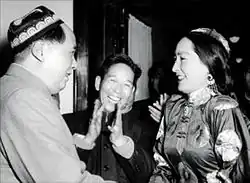 In 1949, she performed at a gala to welcome the Chinese People's Liberation Army to Xinjiang. Several of her dances, including "Drumming", "Linpadai", and "Plate Dance", were included in the film documentary Chinese National Unity. In 1950, she travelled to Beijing as a representative of Xinjiang to participate in National Day celebrations and was received by Mao Zedong and other party and state leaders.