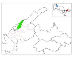 Qibray is a district of Tashkent Region in Uzbekistan. The capital lies at the town Qibray.[1] It has an area of 560 km2 (220 sq mi)[2] and it had 202,200 inhabitants in 2021.[3] The district consists of 16 urban-type settlements (Qibray, Salar, Argin, Taraqqiyot, Alisherobod, Geofizika, Doʻrmon, Yoshlik, Koʻprik boshi, Madaniyat, Mustaqillik, Nurafshon, Uymaut, Unqoʻrgʻon-1, Oʻtkir, X.Amirov) and 10 rural communities.[1]