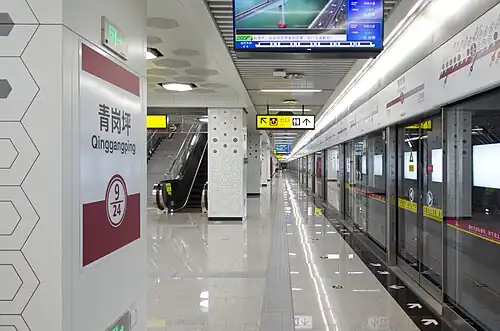 Qinggangping Station is a station on Line 9 of Chongqing Rail Transit in Chongqing municipality, China,[2] which opened in 2022.[1] It is located in Yubei District.
