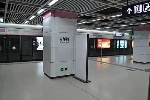 Qingnian Road Station (Chinese: 青年路站) is a station of Line 2 of Wuhan Metro. It entered revenue service on December 28, 2012. It is located in Jianghan District.[1]