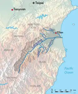 ![]() Map showing the mouth of Qingshui River at its confluence with the Lanyang River | |