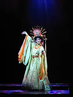 Qinqiang (秦腔, pinyin: Qín qiāng, literally "Qin's tune"[1]) is a genre of folk Chinese opera originated in Shaanxi Province of Qing China in 1807 and soon took over other genres to be the representative genre of the province.[2] Historically, there were two separate genres both referring themselves as Qinqiang, the one with a longer history was later renamed as Handiao Erhuang (汉调二簧),[2] while the newer genre is the topic of this article.