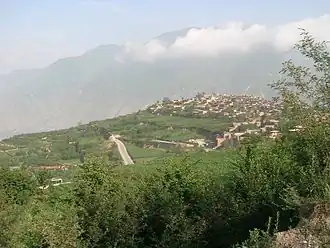 ![]() A mountain village near Wenchuan, in the southern part of the range | |