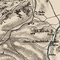 In a map made by Pierre Jacotin during the French campaign in Egypt and Syria, Tell Qamun appeared under the name of Chateau d'El Kireh (Castle of Qira), and Qira appeared as Qairah.[6] In his visit to Qamun and Qira, van de Velde found a church on Qamun, and then he searched for a castle in Qira, but when he arrived to the site, he only found ruins "which externally presented nothing of importance". He came to the conclusion Jacotine confounded the tell of Qamun with that of Qira.[7]