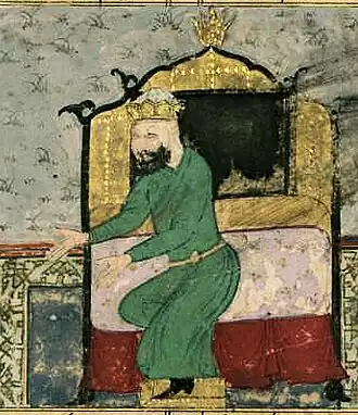 At the same time, the central power began to get weaker as mamluks, who had strengthened their dominance in their areas, did not want to obey the Sultan. Even Shirvanshah Akhsitan I who used to be Atabegs’ liegeman attempted to intervene the interior affairs of the Eldiguzids and opposed Qizil Arslan's aspiration to the throne. In the response to this, Qizil Arslan invaded Shirvan in 1191, reached to Derbent and subordinated the whole Shirvan to his authority. In 1191 Toghrul III, the last Seljuq ruler was overthrown by Qizil Arslan.[2][3]