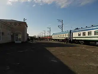 Qońirat, also spelled as Kungrad[2] (Karakalpak: Қоңырат, Qońırat), formerly known as Zheleznodorozhny (Russian: Железнодорожный, until 1969), is a city in Karakalpakstan, Uzbekistan, located in the Amu Darya delta[2] on the left bank of the river. It is the seat of Qońirat district.[3] Its population was 37,100 in 2016.[1]