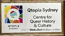 Qtopia Sydney is a museum and cultural centre located in Sydney, Australia, dedicated to preserving and celebrating LGBTQIA+ history and culture.[1] It is the largest queer museum in Australia[2] and forms part of a global network of queer museums and archives. Notable institutions in this network include the Leslie-Lohman Museum of Gay and Lesbian Art in New York, Schwule Museum in Berlin, Queer Britain in London, the Queer Museum in Vienna, the Tucson Gay Museum in Arizona, and the GLBT Historical Society in San Francisco. It is also associated with archival institutions such as IHLIA LGBTI Heritage in Amsterdam, the ONE National Gay & Lesbian Archives in Los Angeles, the Centrum Schwule Geschichte in Cologne, and the Forum Queeres Archiv München.