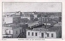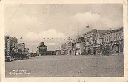 The first Qu'Appelle businesses of 1882 were a restaurant operated by J. Stoddard; pool hall by Love & Raymond; livery and feed store by Johnston & Paterson; livery and feed store by Joe Doolittle; and harness shop by John Milliken.[25] An observatory was opened in 1882 by Leslie Gordon and provided morning and evening weather readings for the CPR until 1907, when the observatory was supplemented with anemometer and weather recording devices.[15]: [42] [26] The Qu'Appelle Felt and Boot factory opened at the end of 1897 but liquidated in 1900.[15]: [49] A fire in 1883 destroyed much of the new business district but soon there were six stores, three hotels, five implement agencies, two butcher shops, a flour and feed store and a bakery.[27]
