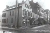 The Quackenbush House, built in the 1730s, was until recently considered the oldest house and structure in the city of Albany. However, it has recently been discovered that 48 Hudson Avenue may have been built as early as 1728.[4][5] The Quackenbush House was originally beyond the city limit of the city of Albany as established by the Dongan Charter at Clinton Avenue,[6] which was Patroon Street at the time.[7] In 1812 the city would annex land to the north including the Quackenbush House.[8] The building has been home to two French restaurants, Nicole's Bistro (1995–2008) and Le Canard Enchaine (2008–2009).[9] Today the building is home to an English-style pub, The Olde English Pub and Pantry.[10] The current mailing address for the restaurant is 25 Quackenbush Square.[11] Also at Quackenbush Square is the Albany Heritage Area Visitors Center with a gift shop, the Henry Hudson Planetarium, and the Albany County Convention and Visitors Bureau.[12]