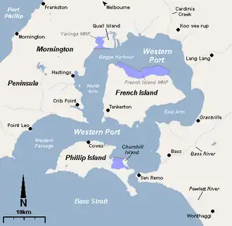 Quail Island is the third-largest island in Australia's Western Port, after Phillip Island and French Island. The island was listed on the Register of the National Estate, and its wetlands are listed on the Ramsar Convention.[2]