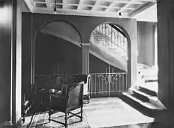 After the war, the hotel was renovated, including all-new interior and furniture for the restaurant and saloons.[7] Plans for a ski lift were launched by hotel manager Ruth Juul in 1936. Instead, the hotel started with slalom instruction. In 1947, the tourist committee started working on the plans, which resulted in Norsk Spisevognselskap being a major owner of the lift which opened at Hovden in 1952. This also gave a large increase in demand.[8] In 1957, Architect Hugi Kohmann presented a model for three additions, two large two-story buildings and one eight-story. Although supported by the hotel management, the board of Spisevognselskapet were split, and in the end only one of the two-story extensions were built and completed in 1962.[2]