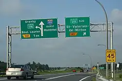 Quebec Route 211 is a provincial highway in the Canadian province of Quebec. Located in the Montérégie and Estrie regions in the southern part of the province, the highway's southern terminus is at Route 137 north of Granby and its northern terminus is at Quebec Autoroute 20 in Saint-Simon, east of Saint-Hyacinthe.