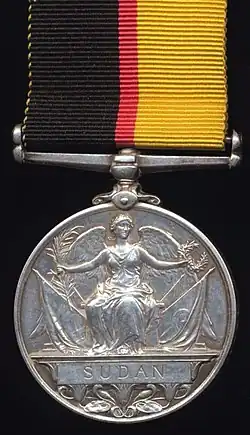 The Queen's Sudan Medal was authorised in March 1899 and awarded to British and Egyptian forces which took part in the Sudan campaign between June 1896 and September 1898.[1]
