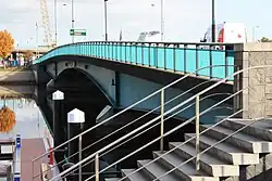 The Bridge opened to traffic, along with the other elements of the scheme, on Sunday 3 April 1966. It was then officially opened by the Queen and Duke of Edinburgh on 4 July, however their visit was marred by both a concrete block being dropped on their car from a height and a bottle being thrown at it as they made their way through the city centre.[2][7][8]