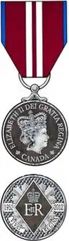 - ^ Office of the Governor General of Canada (3 February 2011). "Commemorative Medal Created for the Diamond Jubilee of Her Majesty Queen Elizabeth II". Queen's Printer for Canada. Retrieved 18 June 2012.