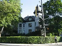 Queen Street forms the western boundary line of the Durand neighbourhood. Durand is also bounded by Main Street to the north, James Street and James Mountain Road to the east and the Niagara Escarpment to the south. With the turn of the 20th century, luxurious new residences were built along Markland and Aberdeen Avenues and to the south in the lee of the escarpment. These residences reflected the entrepreneurial spirit of those who made their fortunes in transportation, finance, industry, and commerce in one of North Americas major centres, Hamilton. By 1920, the Durand neighbourhood was considered to be the “exclusive” neighbourhood in Hamilton. However, the Great Depression and the Second World War took their tolls on the fortunes of many of the established Durand households. Owners could no longer afford the taxes and upkeep on their homes, and many of the grander residences were either demolished and replaced with middle-class low-rise housing, or were renovated to become low-rise apartment buildings. Much of the heritage of the neighbourhood survives today.[1]
