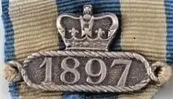 Holders of the 1887 medal who again qualified were awarded a bar inscribed '1897' surmounted by a crown, to be attached to the ribbon of the existing medal.[3]