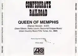 "Queen of Memphis" is a song written by Dave Gibson and Kathy Louvin, and recorded by American country music band Confederate Railroad. It was released in December 1992 as the third single from their album Confederate Railroad. It peaked at number 2 in the United States (behind "What Part of No" by Lorrie Morgan), and number 3 in Canada. It is the band's highest-peaking single.
