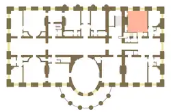 The Queens' Bedroom is on the second floor of the White House, part of a guest suite of rooms that includes the Queens' Sitting Room.[1] The name of the suite of rooms is taken from the number of female royalty who have stayed in the room: Elizabeth, queen consort of King George VI; Queen Elizabeth II of the United Kingdom; Queen Wilhelmina of the Netherlands; and Queen Juliana of the Netherlands.