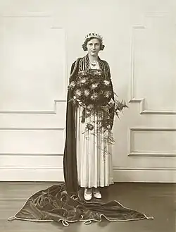 Textile industries embraced the idea of queens from the late 1920s, to act as ambassadors for the industry in face of a crash in cotton prices.[1] Queens from a variety of textile industries were popular in the 1930s, but social changes after the Second World War meant that they did not return to their previous popularity.[2] In 1949 a new 'Textile Queen' competition was launched in Blackpool, but it was not repeated.[2]