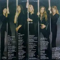 The cover features all five of the Runaways dressed in similar black shirts and pants, all "clinging to long, metallic shafts"[11] in a design that Marianne Moro describes as a "stripper pole album cover theme".[12]