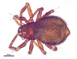- ^ Platnick, N. I.; Forster, R. R. (1989). "A revision of the temperate South American and Australasian spiders of the family Anapidae (Araneae, Araneoidea)". Bulletin of the American Museum of Natural History. 190: 1–139.