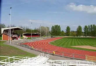 Queensway Stadium is an athletics stadium in Wrexham, Wales, which is home to the Wrexham Athletics Club and FC Queens Park football club.