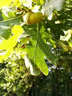 Quercus × rosacea, the hybrid oak,[2] is a naturally occurring hybrid species of oak native to central and northern Europe.[1] It is a hybrid between sessile oak Quercus petraea, and pedunculate oak Quercus robur, found where their ranges overlap. As a fertile hybrid, it is morphologically variable, but in general the traits are intermediate between those of the parents.[2]