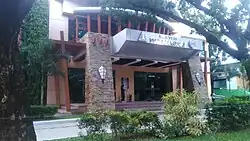 The Main Library's location has been moved or reassigned several times throughout the history of the Quezon City Public Library.[3] The library is currently housed in a three-story building within the Quezon City Hall Complex which was inaugurated and opened by Mayor Herbert Bautista along with City Librarian Emelita Villanueva[4] on February 6, 2017.[5] The building for the main library has been planned since 2010. The library building's facilities include a cafe, a children's corner, a function room, and a puppeteer's room. Computers are also available for public use.[4]