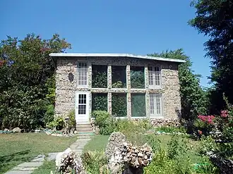 Quigley's Castle is a historic house museum and garden at 274 Quigley Castle Road, off Arkansas Highway 23 south of Eureka Springs, Arkansas, and is one of the most unusual houses in northwestern Arkansas. The house was designed by Elise Quigley and built in 1943 by Albert Quigley and a neighbor, using lumber from the property. The exterior of the house is decorated with the collection of rocks Elise Quigley had accumulated since childhood. The house was specifically designed by Quigley to accommodate a two-story space for tropical plants. Over the years Elise Quigley's gardens expanded to take over much of the property. In 1950 the family began charging admission to tour the home, a practice that continues today.[2]