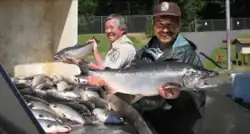 The coho salmon raised at the hatchery are anadromous, meaning that after hatching and growing in streams they migrate into the open ocean, where they spend their adulthood before returning to their birthplace, or natal stream, to spawn. Typically, the fish spend about 18 months at sea before returning to their natal streams, which in the case of hatchery-raised fish are the hatchery's tanks. The fish begin to return to the hatchery each year in August.[1]