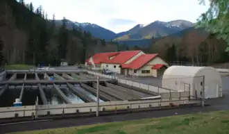 The Quilcene National Fish Hatchery is a fish hatchery located in Quilcene, Washington, in the United States. It is co-managed by the United States Fish and Wildlife Service and five Native American tribes. Like other components of the National Fish Hatchery System, the hatchery's mission is to conserve, protect, and enhance fish, wildlife, plants, and their habitats, as well to cooperate with like-minded partners to further these goals. Its specific purpose is to fulfill a United States Government treaty obligation to support fisheries of economic and cultural importance to Native Americans by producing fish which it stocks in Native American tribal waters in western Washington.[1][2][3]