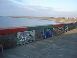 Across the bay from Quilty is Mutton Island. Saint Senan founded a church here in the early 6th century but by 1887 little remained except the Bed of St Senan, a shattered cross and a gable of his oratory. A signal tower built in the early 19th century was designed to give warning of invasion during the Napoleonic period but was also used by the coastguard to prevent smuggling. In the early 20th century Mutton Island was used as a prison; during certain tidal conditions, it is possible to walk along a path of limestone from Seafield (near Quilty) to Mutton Island.