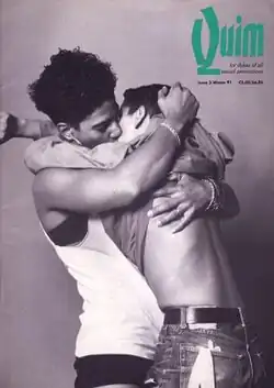 Quim: for dykes of all sexual persuasions was a British sex positive lesbian softcore magazine published between 1989 and 1994[1] with a further issue published in 2001.[2] The magazine was edited by Sophie Moorcock and Lulu Belliveau, who had previously worked as a photo editor at On Our Backs, the first US magazine of women's erotica. Influences[3] included Shocking Pink a young women's zine produced in London between 1979–1992,[4] Chain Reaction[5] a lesbian S/M club that opened in Vauxhall in 1987, and Sheila McLaughlin's 1987 film She Must Be Seeing Things.[6] The magazine had an irregular publication cycle that depended on when funding and content were available.[7]