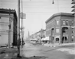 The Quincy Street Historic District covers the central portion of Hancock's business district consisting of the first three blocks of Quincy Street, plus two adjacent properties.[2] The district includes three governmental structures (the Hancock Town Hall and Fire Hall, post office, and a county office building) along with 42 commercial buildings.[2] The majority of the structures within the district were built between 1880 and 1915. The commercial buildings range from two to five stories, and are of frame, brick, or brick and stone construction.[2] The district is notable for the widespread use of local red Jacobsville sandstone.[2]