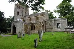 The Parish Church is dedicated to St John the Baptist, mostly remodelled in 1801,[5] though the tower is 13th century and there are Norman parts. There is a notable monument to Eleanor Maccalum (d.1909) in the churchyard of terracotta with angels at the head and foot.