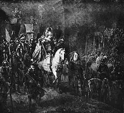 As consul for the following year, he took over his father's command of the army in Apulia and recaptured Arpi.[4] He seems to have remained in Arpi with a few troops as a legatus, a legate or lieutenant, in 212 BC.[5] In 209–208, he was serving still or again as a legatus during his father's fifth consulship. The elder Fabius sent him to recover the survivors of the army under Gnaeus Fulvius Centumalus, who had been killed in a surprise attack by Hannibal in 210. They accompanied him to Sicily, where Fabius took over the legions and fleet assigned to the proconsul Marcus Valerius Laevinus.[6] In 208, he was sent by the senate to the army at Venusia.[7] He may have been the envoy of the consul Marcus Livius Salinator in 207 who reported to the senate that it was safe to withdraw the consular army from Cisalpine Gaul.[8]
