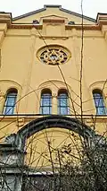 The Rákospalota Synagogue is a former Neolog Jewish congregation and synagogue, located on Old Fóti Road in Rákospalota, in the XVth district of Budapest, Hungary. Completed in 1927, the building was used a synagogue until World War II, subsequently for profane use, including as a warehouse, from the 1960s.