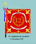 On 3 February 1794, the last of the royalist lineage was diminished following that day's further decree [a supplement to the original 1 April 1791, in which the simply became the 12th Regiment of Cavalry.[17] At this point, the regiment was based in Strasbourg and one squadron (100 troops) detached in Haguenau.[22]