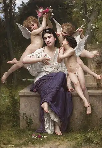 Rêve de printemps (transl. Dream of Spring) is a 1901 painting by the French painter William-Adolphe Bouguereau. The painting is an allegory of spring, it shows a young woman sitting in a forest surrounded by three small amores who crown her with a wreath of spring flowers as déesse du printemps.[1][2]