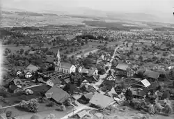 The municipality has an area of 16.7 km2 (6.4 sq mi). Of this area, 77% is used for agricultural purposes, while 16.3% is forested. Of the rest of the land, 6.5% is settled (buildings or roads) and the remainder (0.2%) is non-productive (rivers, glaciers or mountains).[4] In the 1997 land survey, 16.22% of the total land area was forested. Of the agricultural land, 68.53% is used for farming or pastures, while 8.53% is used for orchards or vine crops. Of the settled areas, 3.3% is covered with buildings, 0.3% is industrial, 0.66% is classed as special developments, 0.12% is parks or greenbelts and 2.16% is transportation infrastructure. Of the unproductive areas, 0.06% is unproductive flowing water (rivers) and 0.12% is other unproductive land.[5]